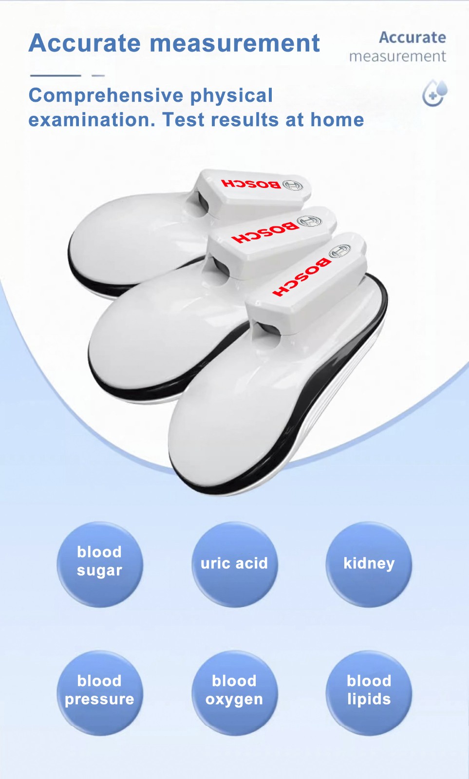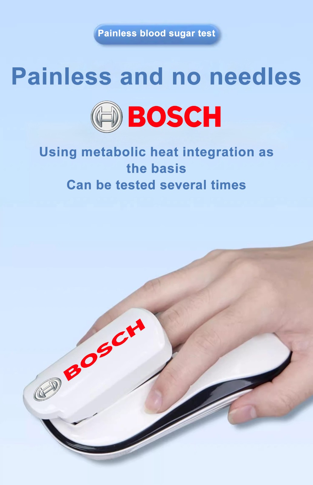 El primer glucómetro multifuncional no invasivo de BOSCH no sólo es adecuado para medir el azúcar en sangre, la presión arterial, el ácido úrico, el sistema circulatorio, el sistema cardíaco y pulmonar, los riñones, la próstata, la frecuencia cardíaca y la temperatura corporal, sino que también tiene una función de tratamiento original con láser.