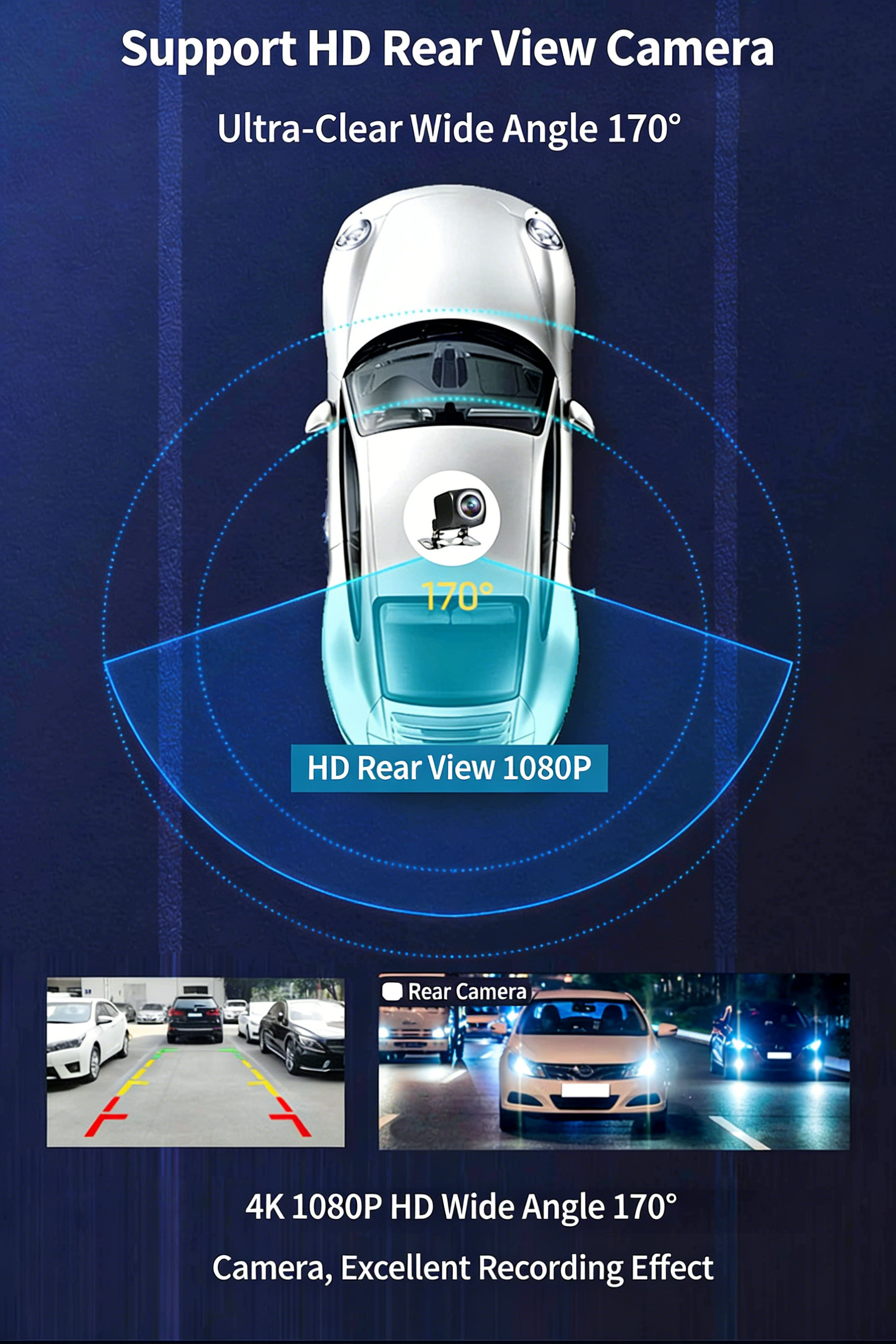 📷 Első–hátsó menetrögzítő kamera · Teljes körű védelem