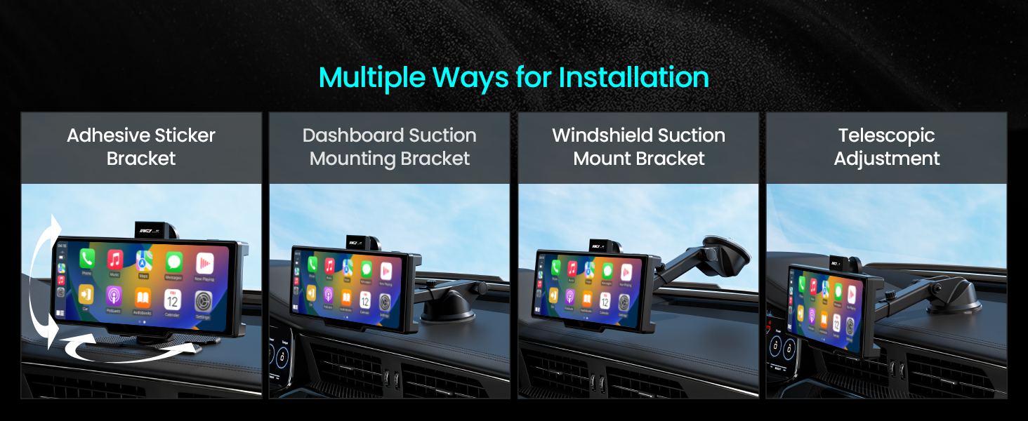 Többféle telepítési lehetőség, mint például tapadókorongos tartó, ragasztós tartó, műszerfalra szerelhető tartó, amelyek rugalmasan alkalmazkodnak különböző típusú járművekhez, így a telepítés kényelmesebb.