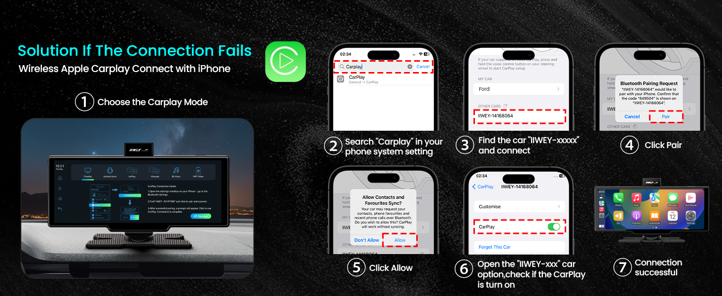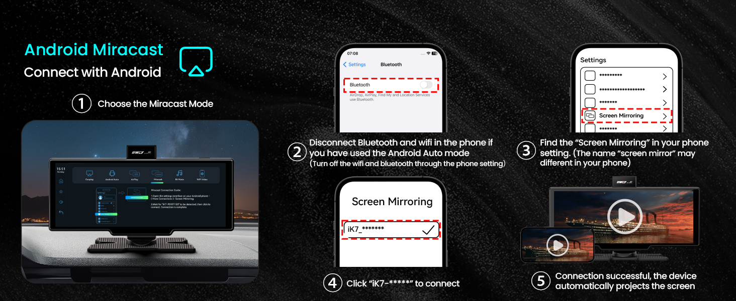 Támogatja az Apple AirPlay és Android Miracast funkciókat, vezeték nélkül csatlakoztathatja telefonját, és tükrözheti azt az autós képernyőn, élvezve a nagyképernyős szórakozást.